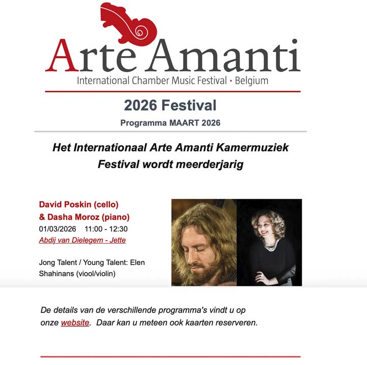 Ook volgende maand staat een nieuwe e-newsletter op het programma, want het muzziekkamerfestival Arte Amanti stopt niet eind maart, integendeel, in april zijn er weer vier concerten gepland en in mei nog eens drie… Maar daar berichten we later over.
